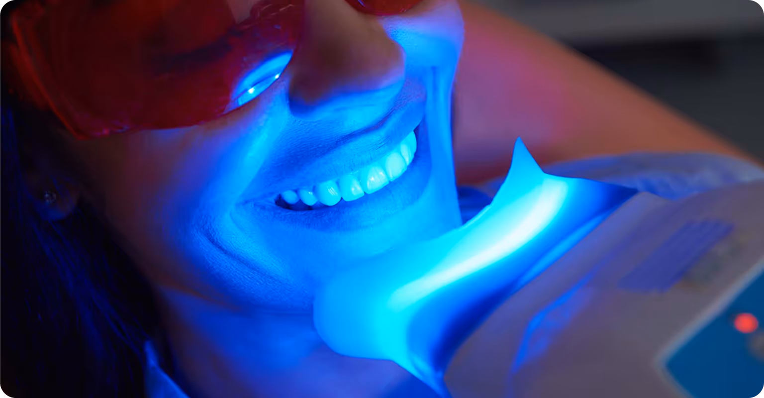 - Whitening application – Professional-grade whitening gel is applied, often with a special light to enhance results.